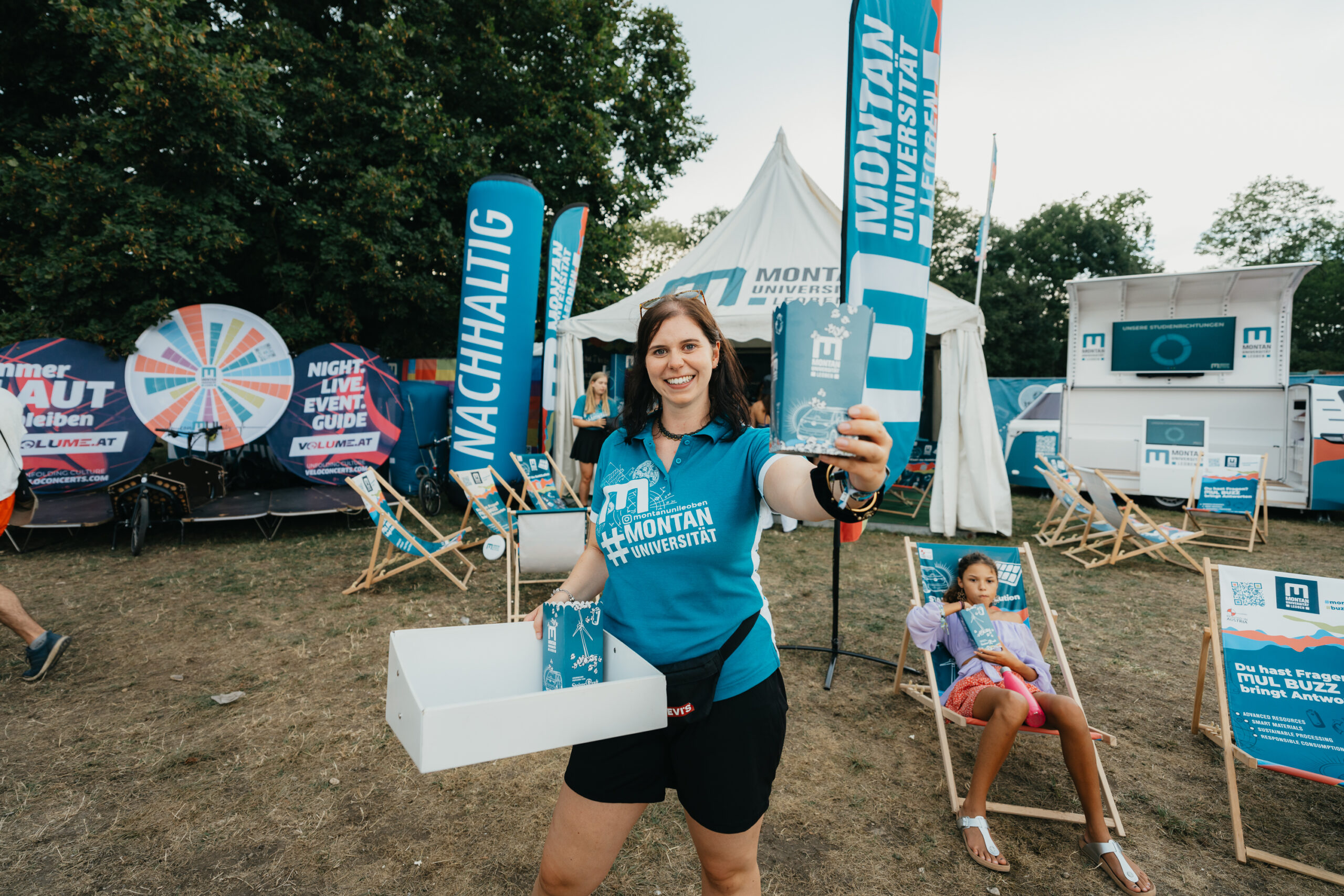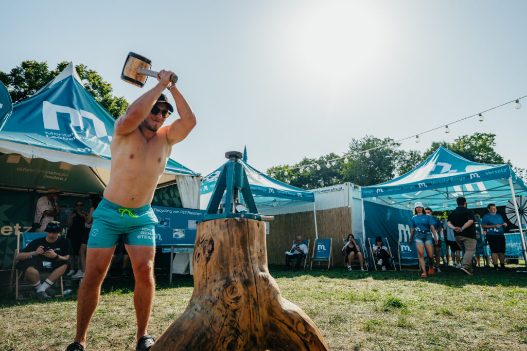 Für die Montanuniversität Leoben haben wir am Frequency ein buntes Rundumpaket umgesetzt. In der Montanuni Area konnten Festivalbesucher*innen Dosen einschmelzen und zu einem Festivalsouvenir prägen. Zusätzlich gab es Chilloutmöglichkeiten und Wissenschaftler*innen, die spannendes Wissen vermittelten. Für den passenden Soundtrack sorgte VOLUME Velo-Pop-Up-Stage, die am Vormittag in der Area Halt machte. Plus: 2025 war die Montanuni Leoben der offizielle Sponsor des Pfandrücknahmesystems.