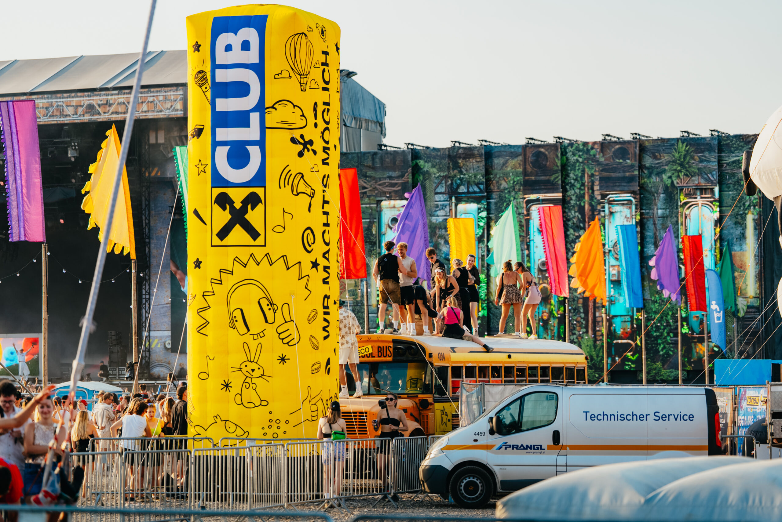 Die Schoolbus Stage ist ein einzigartiges Live-Format, das Musik und Festivalflair auf besondere Weise verbindet. Im Zentrum steht ein umgebauter amerikanischer Schulbus, der sich in eine kompakte Bühne mit unverwechselbarem Charakter verwandelt. In dieser außergewöhnlichen Kulisse finden intime Konzerte und energiegeladene DJ-Sets statt, bei denen nur eine kleine Gruppe von Gästen dabei sein kann. Diese Nähe schafft eine einmalige Dynamik zwischen Künstler*innen und Publikum – und macht die Schoolbus Stage zu einem Ort für unvergessliche Momente, die Fans, Artists und Partner gleichermaßen begeistern.