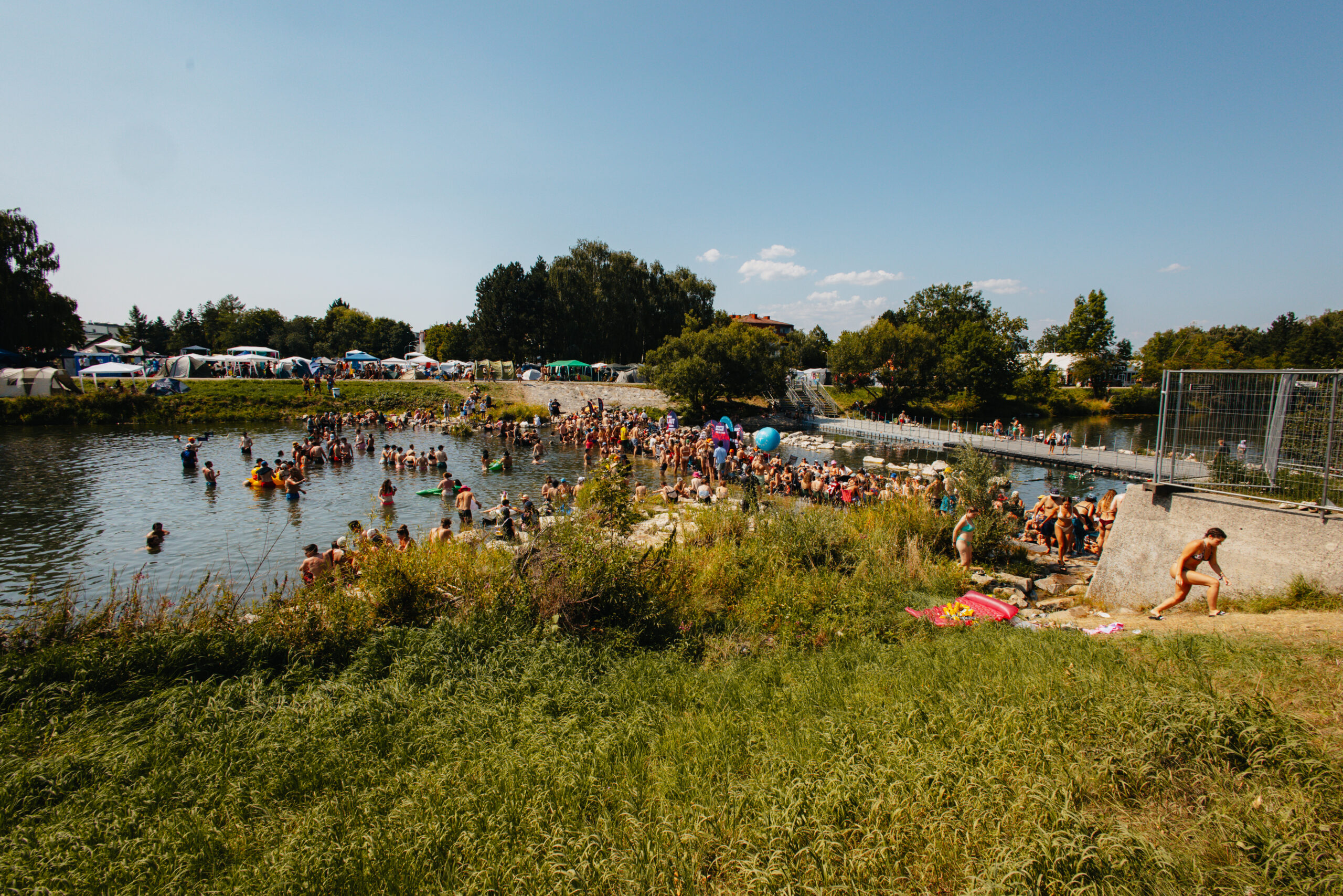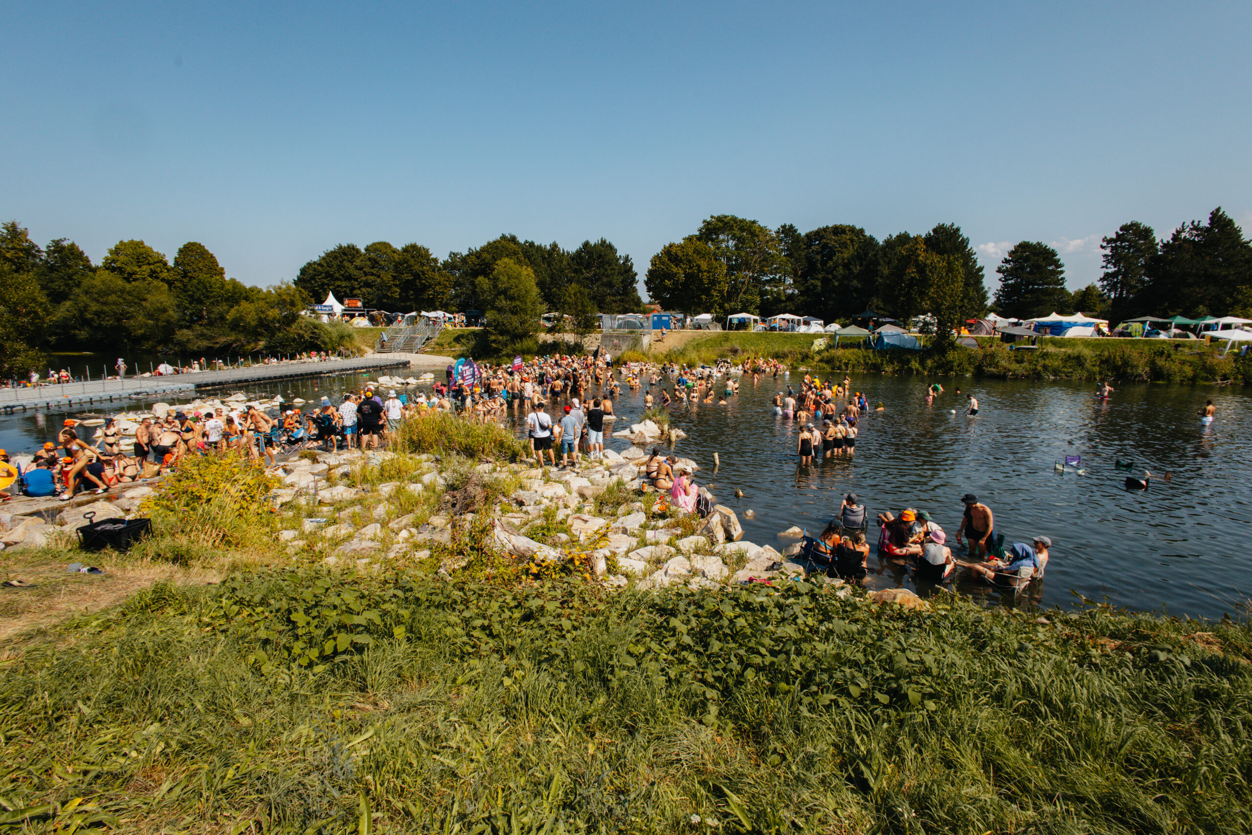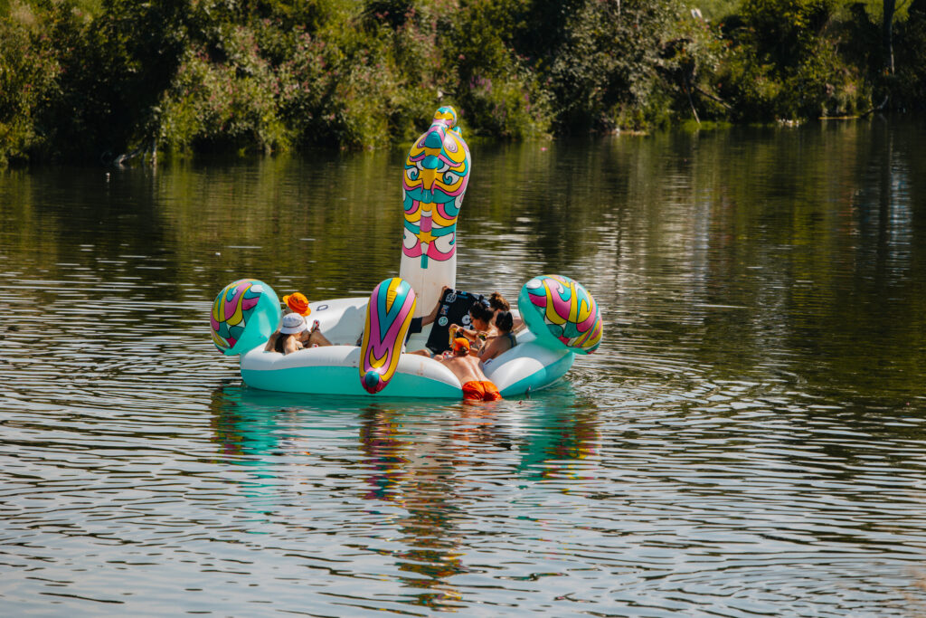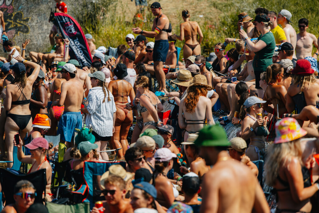 Eine Aktivierung, die wir besonders feiern, ist unsere VOLUME Pop Up WaterStage am Frequency Festival. Dank jahrzehntelanger Eventerfahrung und einer bedingungslosen Partnerschaft mit VeloConcerts haben wir gemacht, was sonst keiner macht: eine mobile Bühne mitten in der Traisen – im Einklang mit der Umgebung, perfekt auf das Gelände abgestimmt und einzigartig in ihrer Umsetzung.